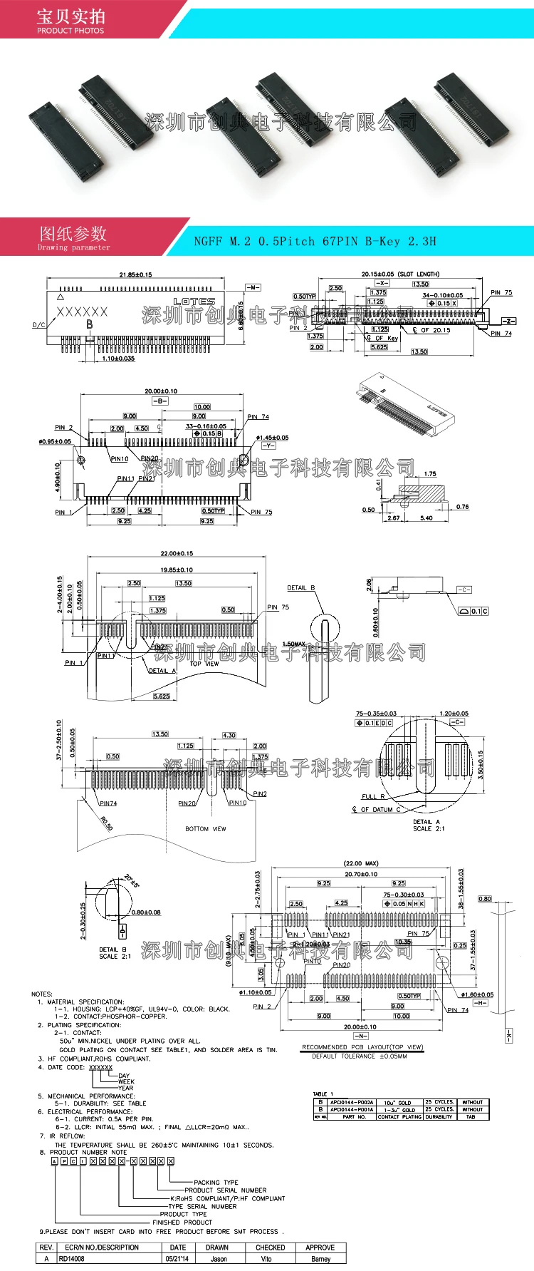 10 Uds 3,2 H M-Key B-Key Original nuevo conector M.2 67P NGFF interfaz socket SSD socket H=3,2 E-Key A-Key G-Key 67Pin