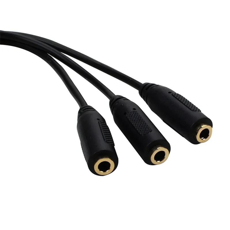 Conector macho de 0,3 M y 3,5 mm a cable divisor de audio estéreo hembra de 3 salidas de 1/8"