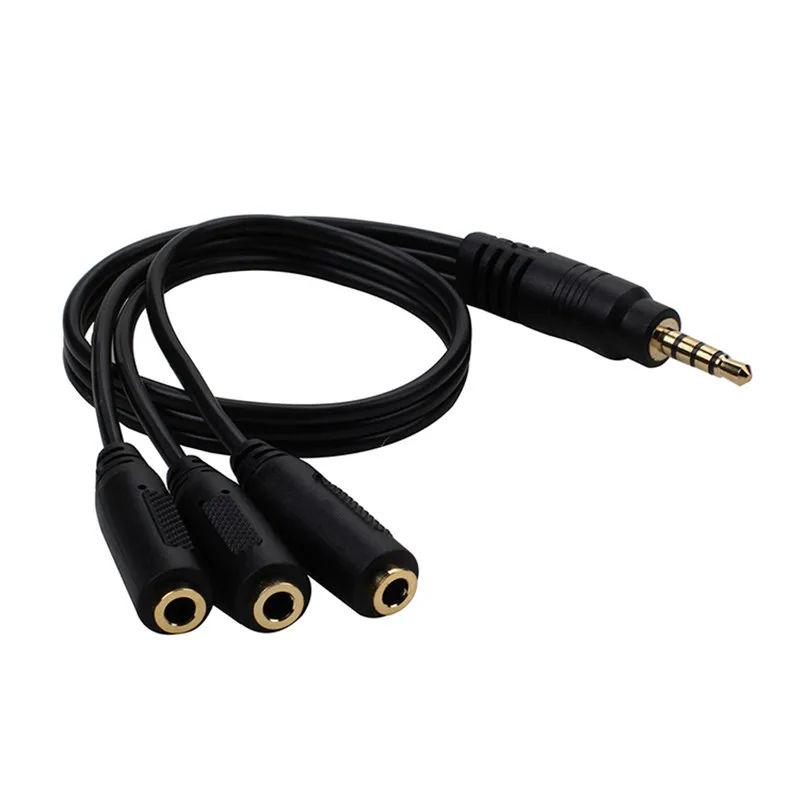 Conector macho de 0,3 M y 3,5 mm a cable divisor de audio estéreo hembra de 3 salidas de 1/8"