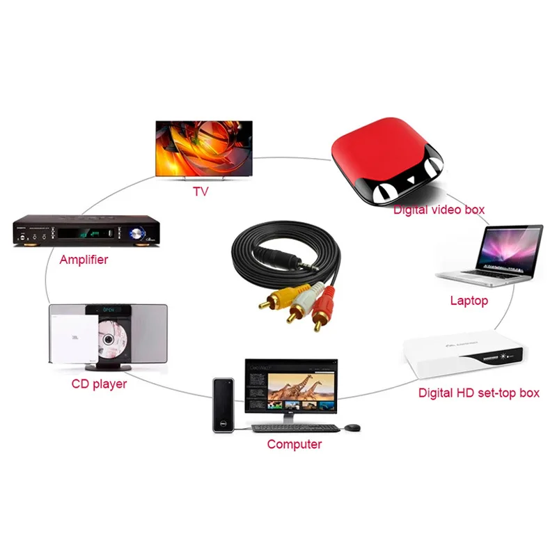 Comprar Conector macho de 150cm y 3,5mm a 3 RCA, Cable AV de Audio y vídeo, para TV Box, DVD, CD, ordenador, altavoz de sonido