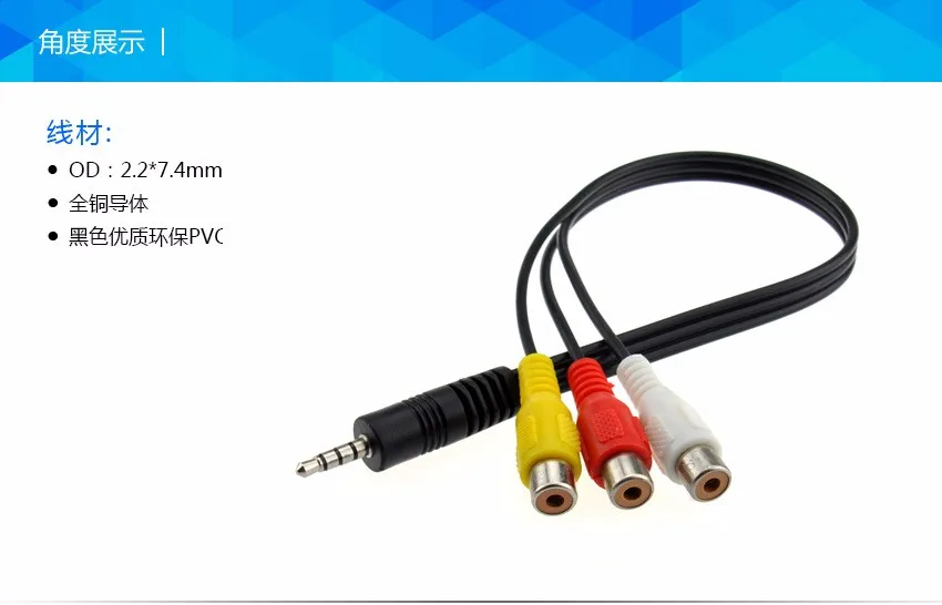Comprar Conector macho de alta velocidad de 3,5mm a 3 RCA hembra, adaptador de enchufe, convertidor de Audio, Cable AV de vídeo