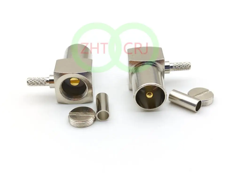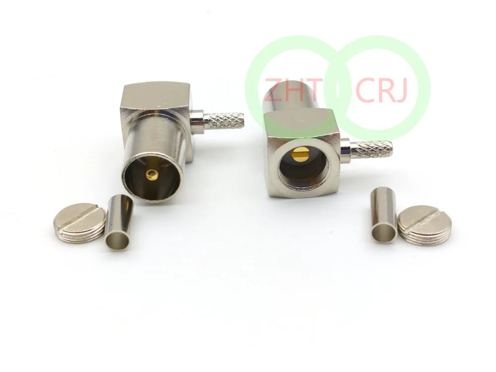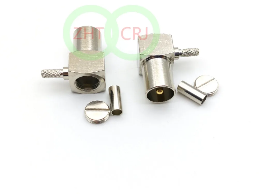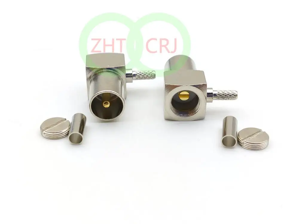 Comprar Conector macho de ángulo recto para TV IEC PAL DVB-T, accesorio de latón para RG174 RG316 LMR100 RF, 100 Uds.