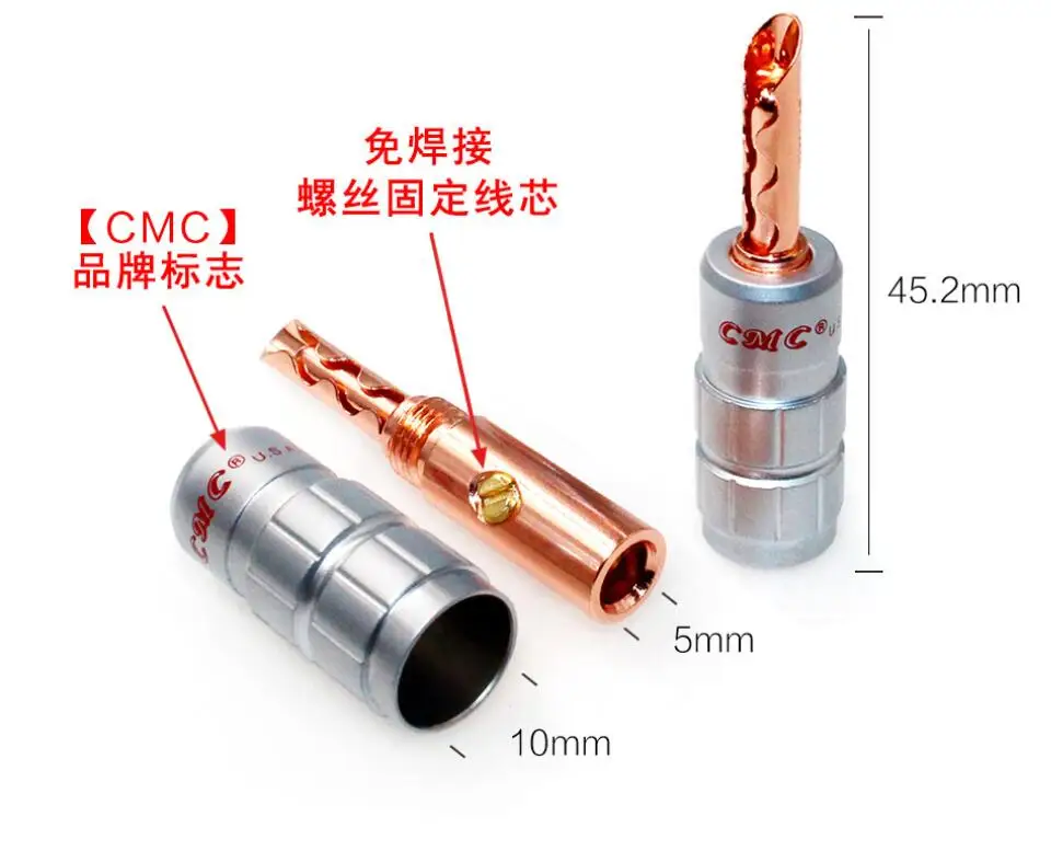 Conector macho BFA de plátano de latón Hifi, Cable de tornillo de 4mm, sin conector de soldadura, Cable de altavoz de Audio chapado en oroConector banana