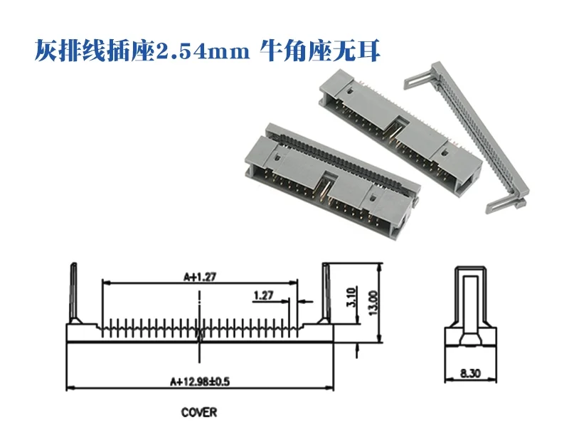 Conector de cabezal de caja IDC recto macho para 2,54, 2, 1,27mm de paso, P 10/14P/16P/20P/26/30/34/40/50/60P/64 Pines, MM espaciado cable plano