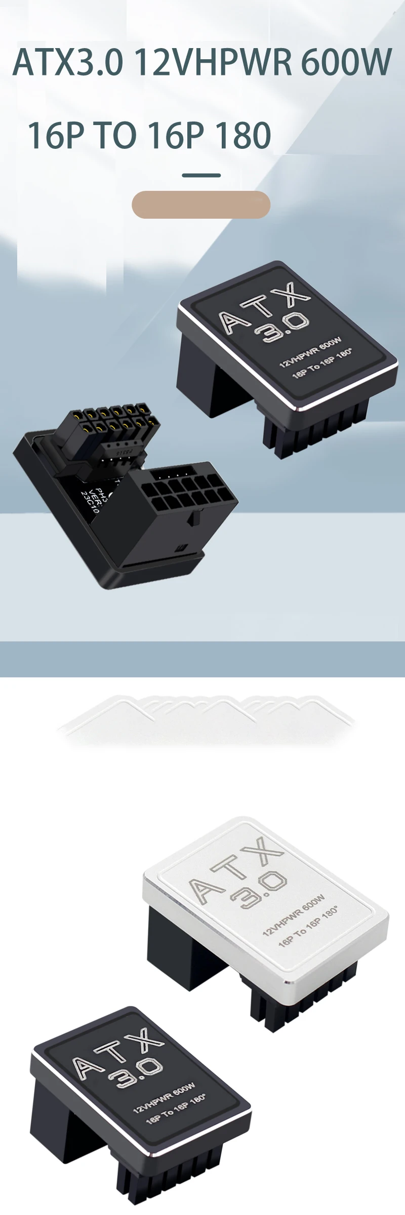 Conector de giro macho a hembra de 180 grados, 12VHPWR, 12 + 4, adaptador de fuente de alimentación de 16 pines y 600W, tarjeta gráfica PCIe5.0, adaptador de corriente ATX3.0
