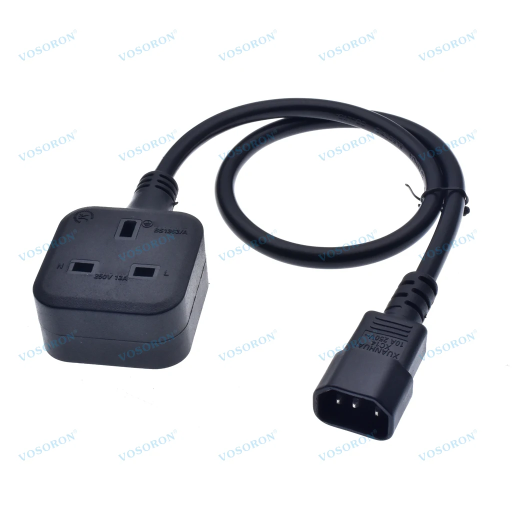 Comprar Conector macho IEC C14 a conector hembra UK BS1363 Cable adaptador de corriente 0,3 m/0,6 m, conectar cable adaptador C13 para PDU UPS 13A 250V
