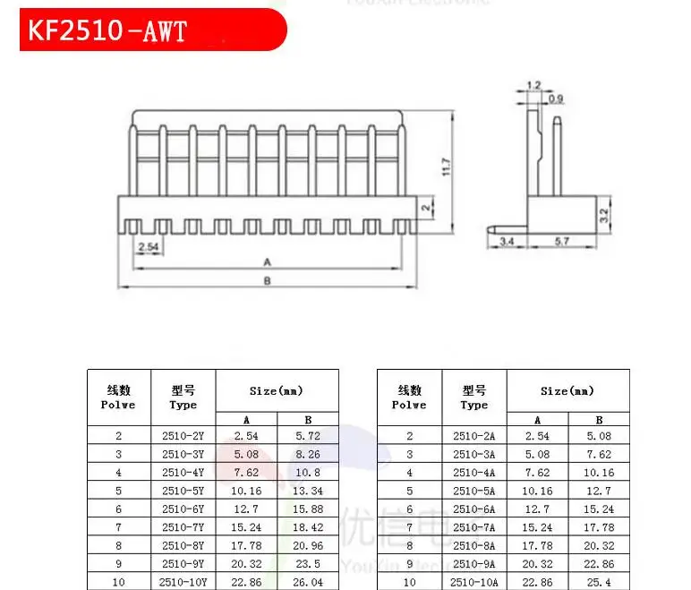 Comprar Conector macho KF2510, cabezal de Pin de ángulo recto, 2AW, 3AW, 4AW, 5AW, 6AW, 7AW, 8AW, 9AW, 10AW, 2510, 2,54 MM, 50 unidades por lote