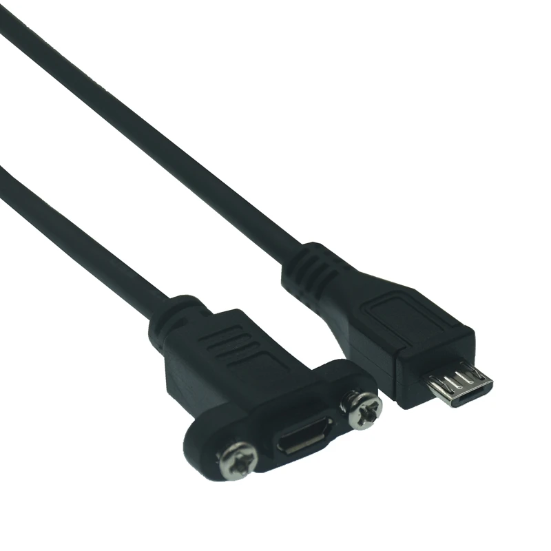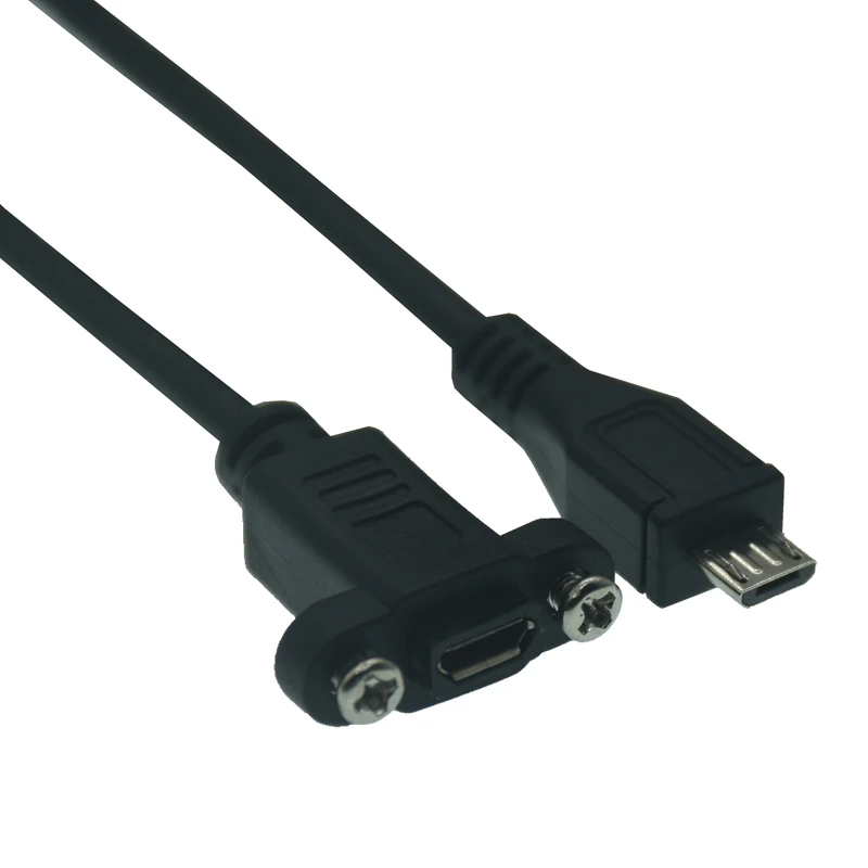 Comprar Conector macho Micro USB 2,0 de 5 pines a Cable de extensión hembra Micro USB 2,0 paso de 17,5mm con tornillos orificio de montaje en Panel 0,25 m