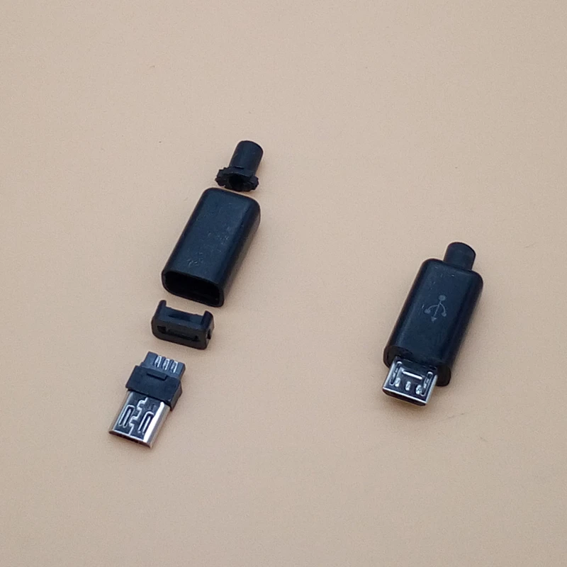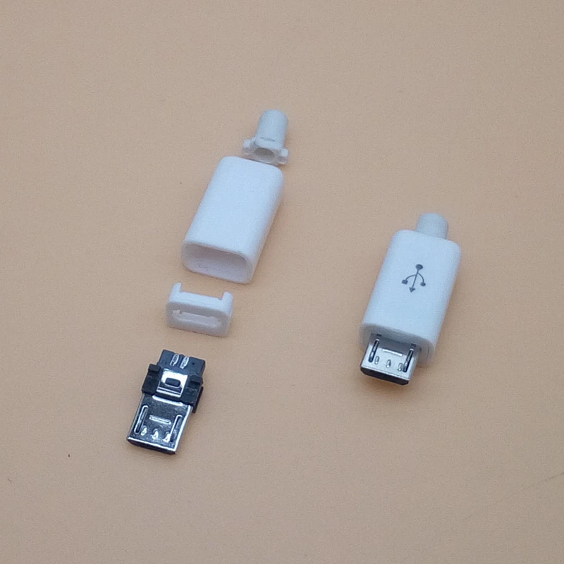 Comprar Conector macho Micro USB de 5 pines, cubierta de plástico blanco y negro, soldadura, 10 unidades por lote