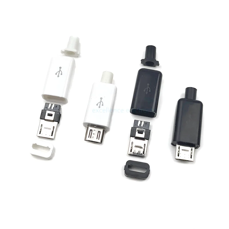 10 unids/lote Micro USB 5 pines conector macho enchufe negro/blanco cubierta de plástico soldadura