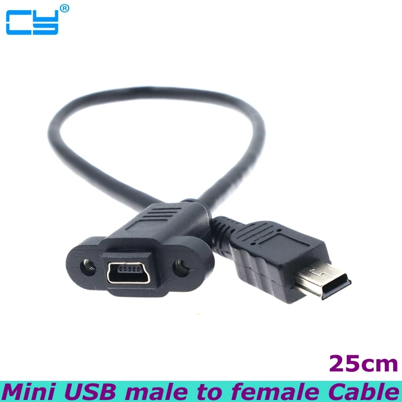 Comprar Conector macho Mini USB 2,0 de 25cm a Mini USB 2,0, Cable de extensión hembra de paso de 17,5mm con tornillos, agujero de montaje en Panel