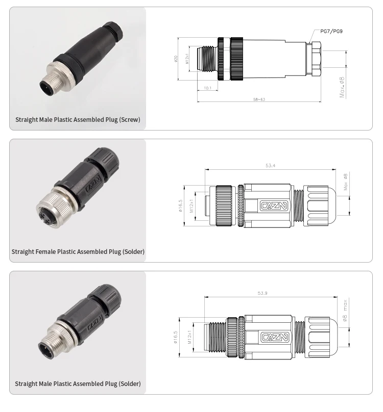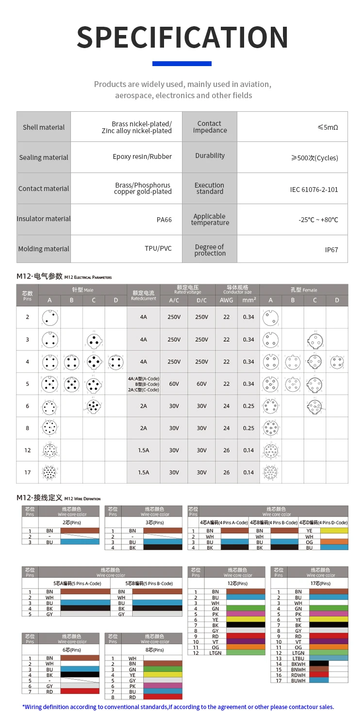 Título: 2 3 4 6 8 12 17 pines Enchufe de montaje de plástico macho Enchufe de conector de tipo soldado IEC-61076-2-101 Enchufe de acuerdo de industria 4.0.