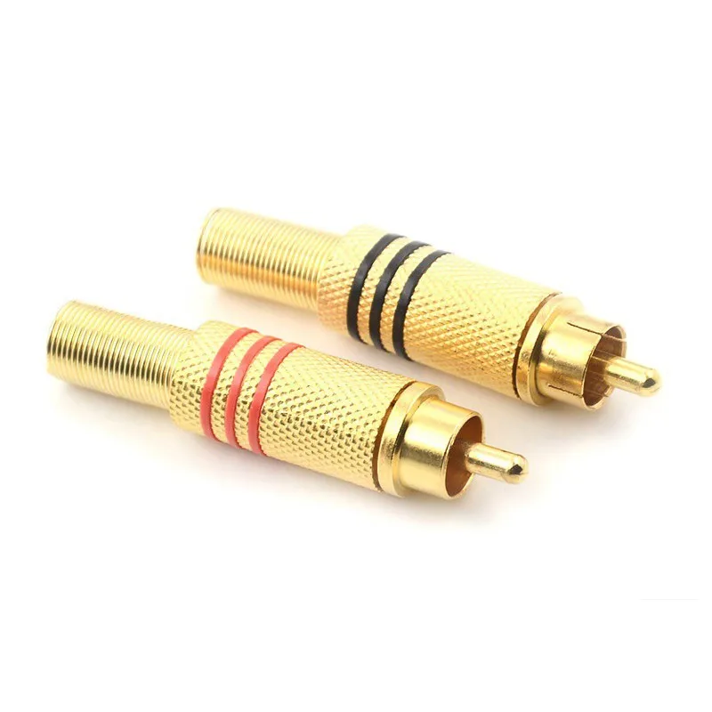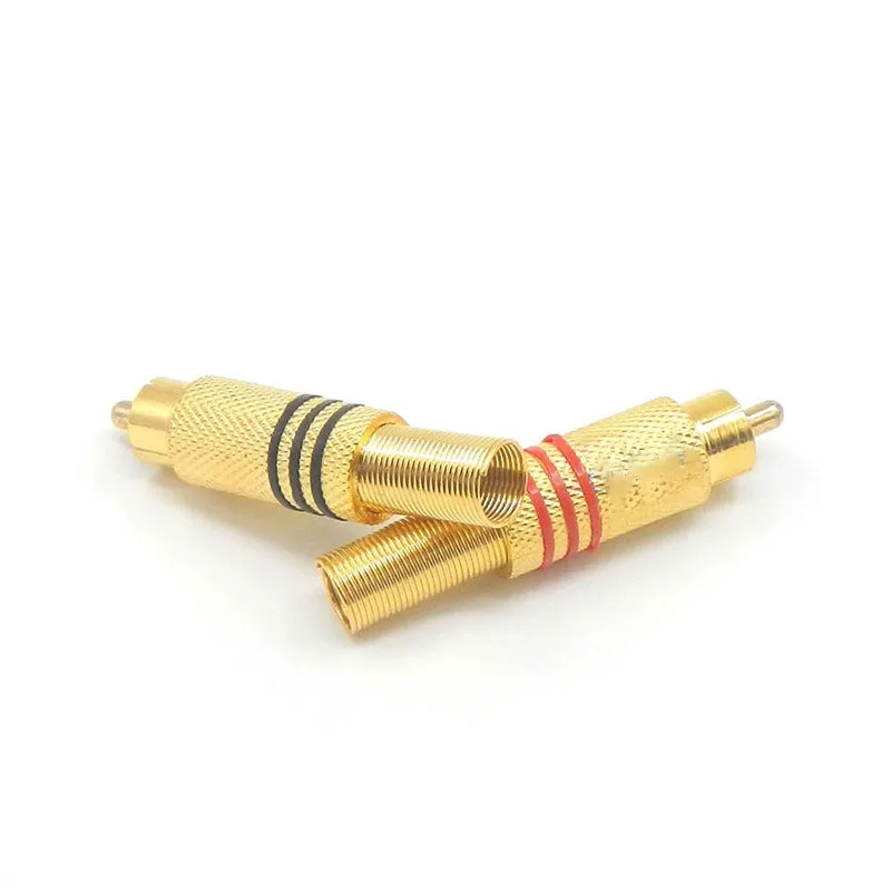 Comprar Conector macho RCA sin soldadura, adaptador de Cable de Audio rojo + negro chapado en oro para cámara de vídeo, cámara CCTV de seguridad, 1/2/5/10 Uds.