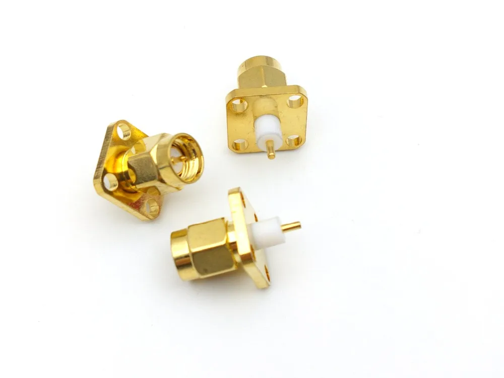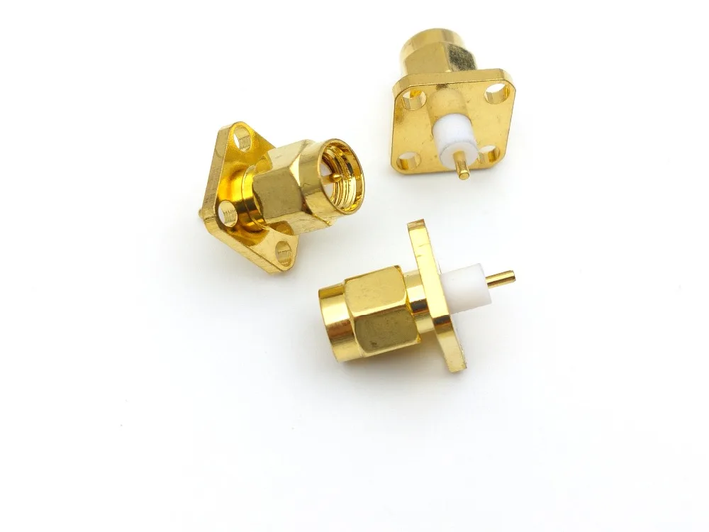 Comprar Conector macho SMA de 100 piezas, montaje en Panel de 4 orificios, corto, poste de soldadura dieléctrico, conectores RF