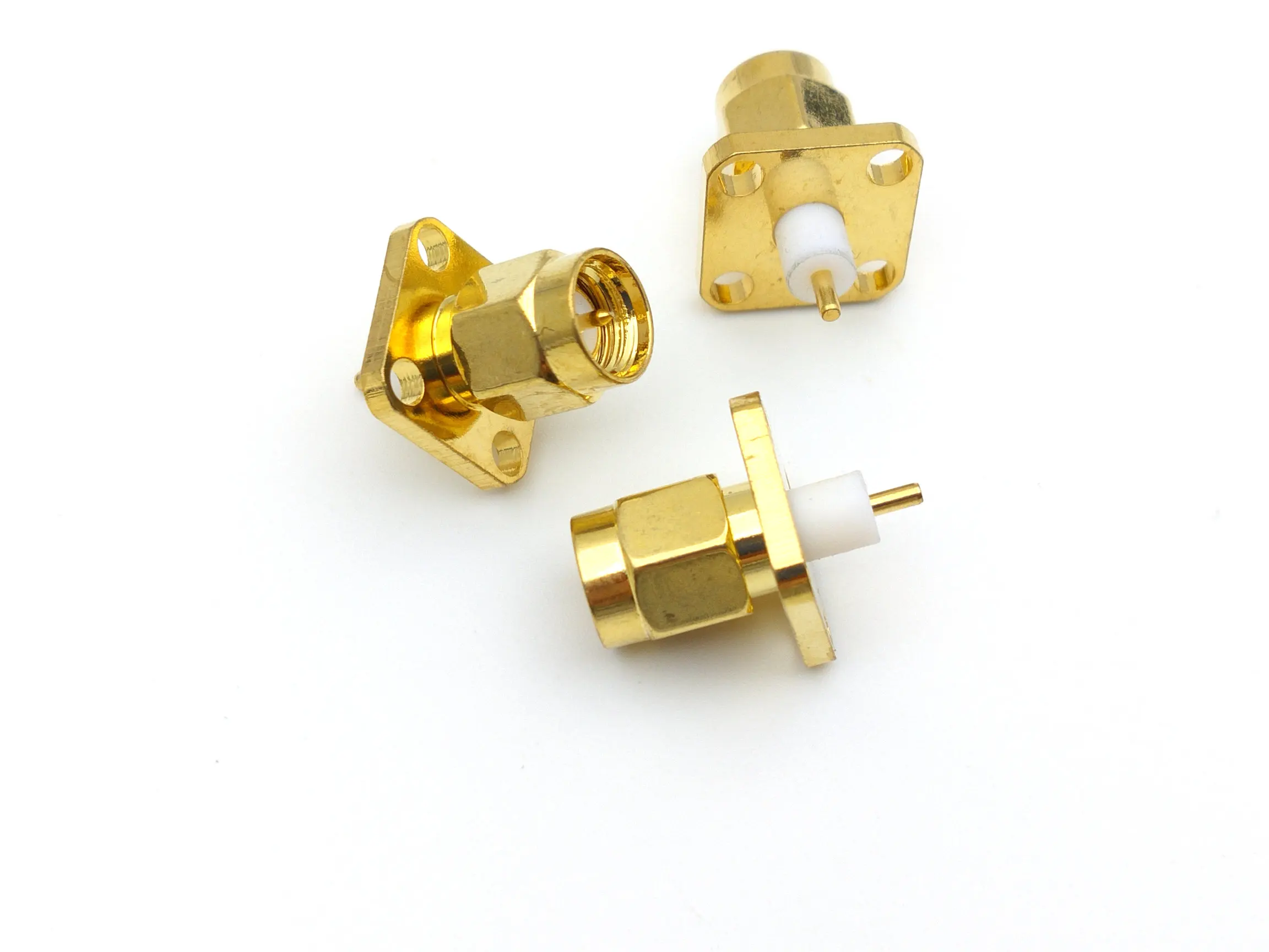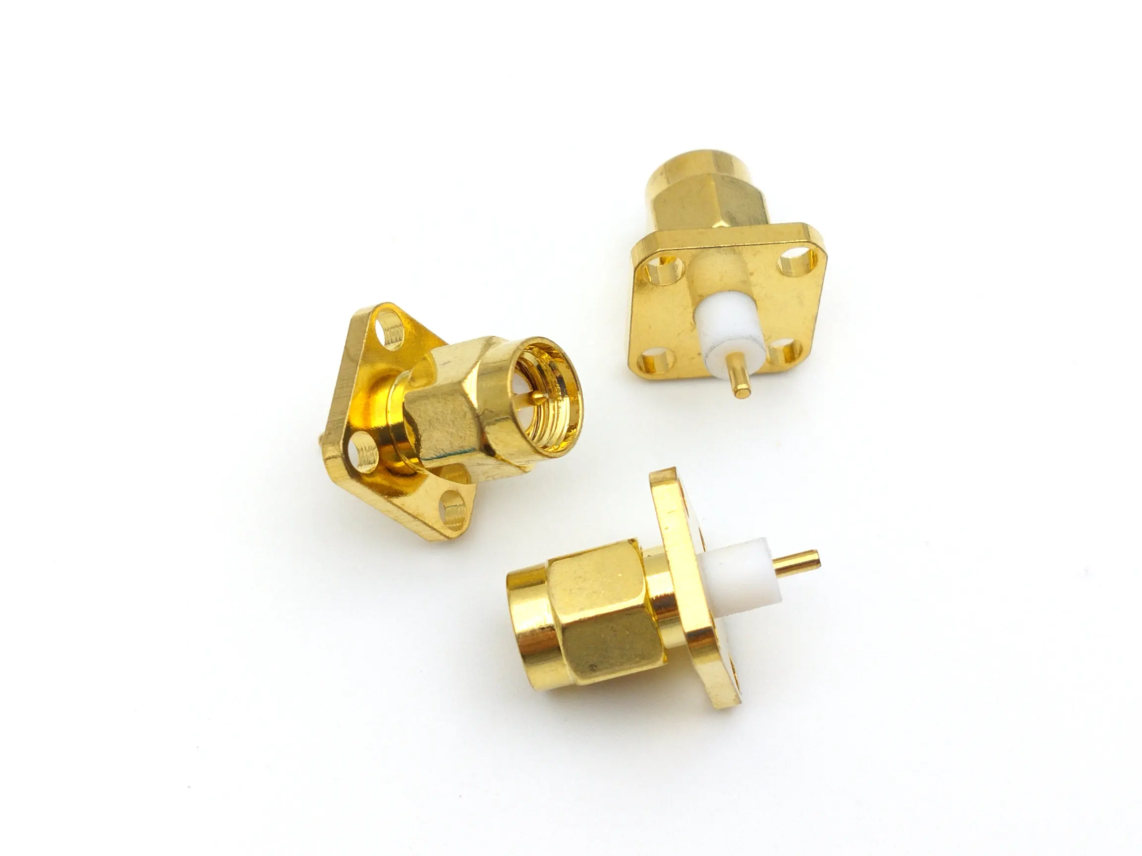 Comprar Conector macho SMA de 100 piezas, montaje en Panel de 4 orificios, corto, poste de soldadura dieléctrico, conectores RF