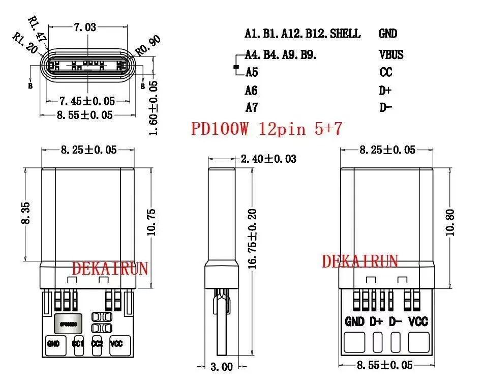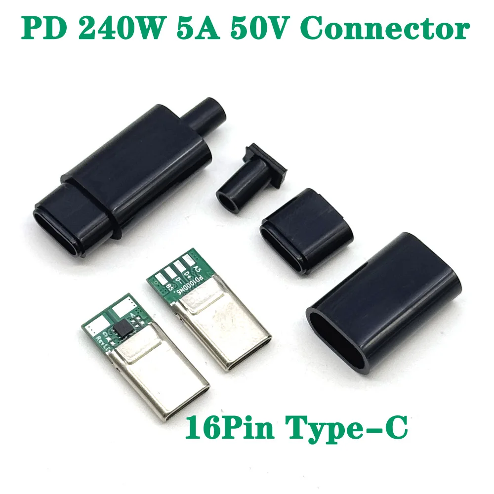 Comprar Conector macho de TYPE-C PD 240W 5A 50V, conector USB de carga rápida 16P con interfaz de línea de datos de soldadura PCB, accesorios de cable de datos DIY