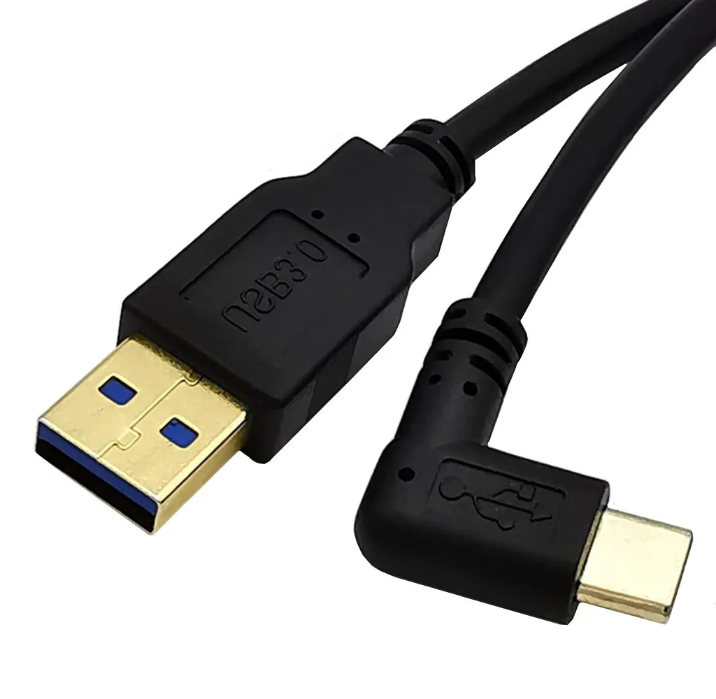 90 grados USB 3,1 tipo C USB-C conector macho A USB 3,0 tipo A estándar Cable de datos macho Cable de carga rápida para dispositivo tipo C