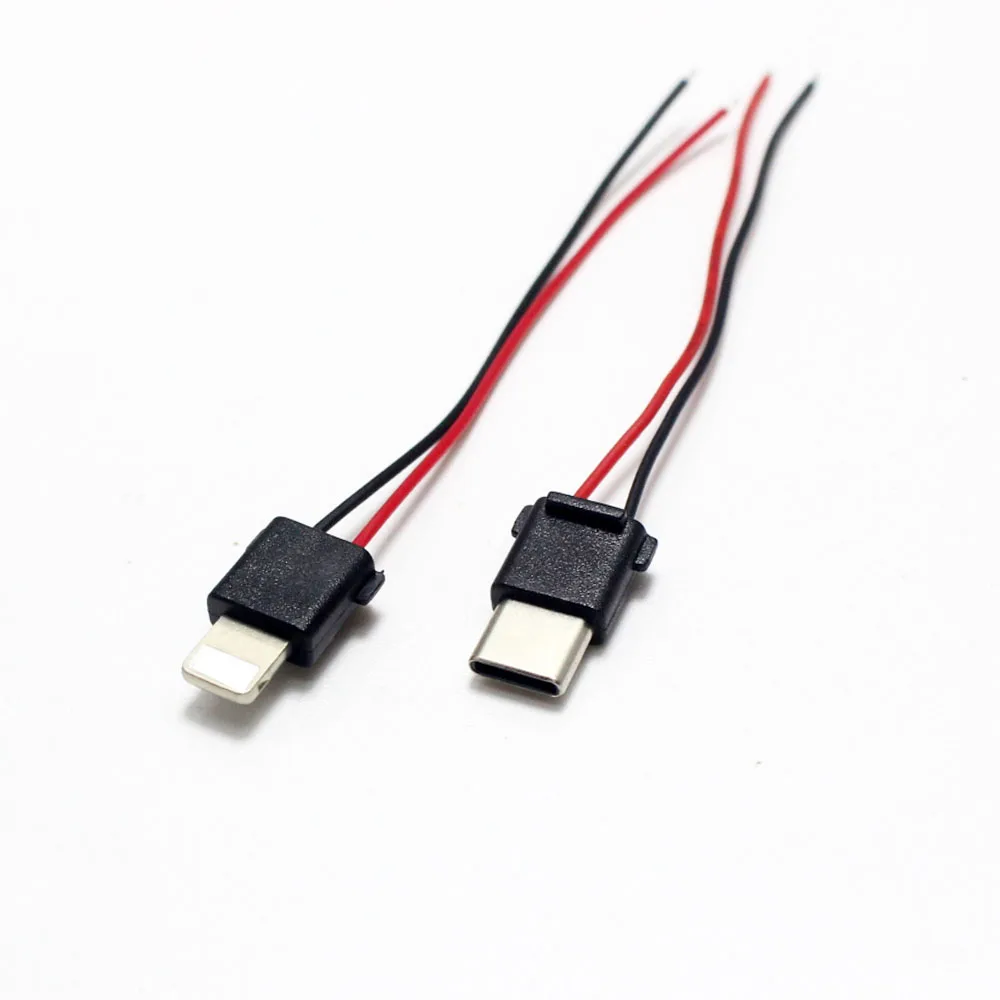 2/5 Uds 2 pines tipo soldadura IOS USB macho enchufe para iphone tipo C con conector de placa de Chip piezas adaptador de cable de enchufe de línea de carga DIY
