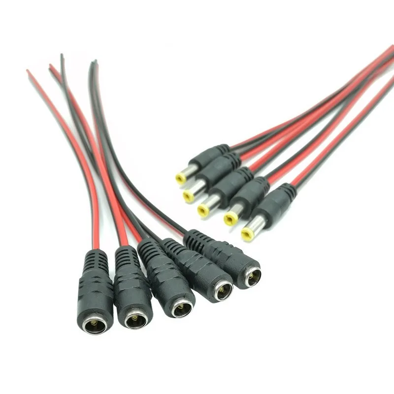 Conector macho hembra de 5 piezas 5,5x2,1mm, conector de Cable flexible de alimentación de 12V CC para conector de cámara CCTV, extensión trasera, Cable de 24V CCDescripción: