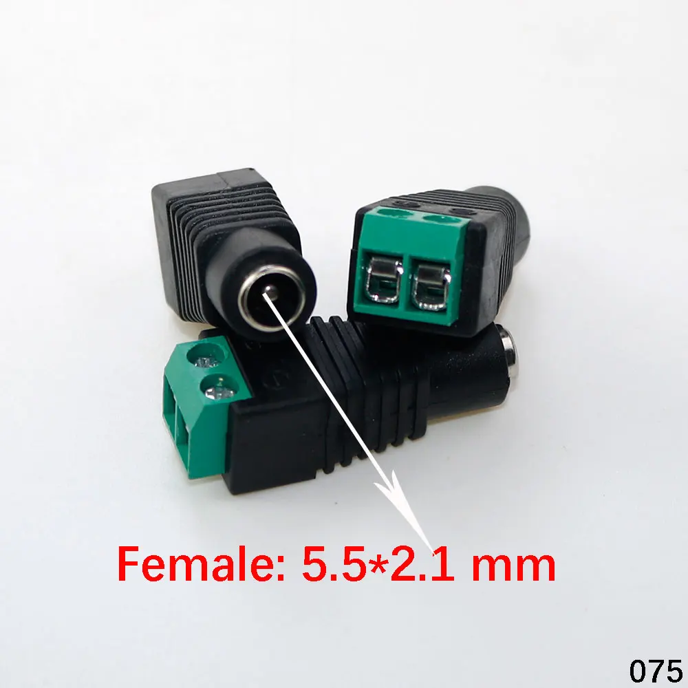 Conector macho y hembra de 2,1x5,5mm de CC, adaptador de conector de alimentación, conector de Cable de enchufe para tira de luz LED 3528/5050/5730 para CCTV, 10 piezas
