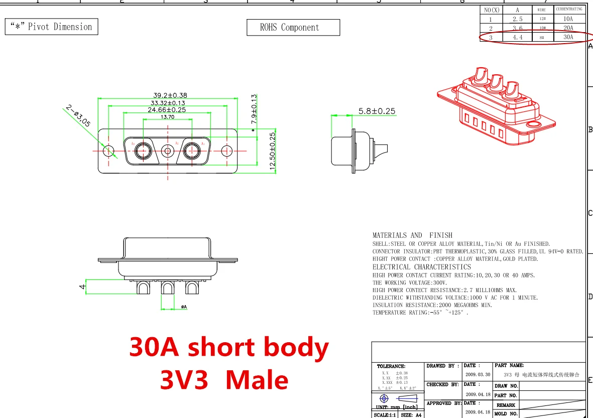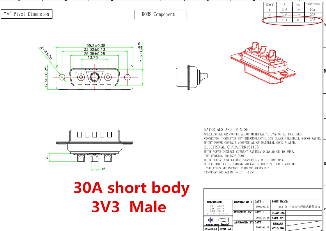 Comprar Conector macho y hembra chapado en oro DB3 3V3 30A, adaptador de piezas de alta corriente, tipo de soldadura, enchufe de 3 pines, 1 D-SUB