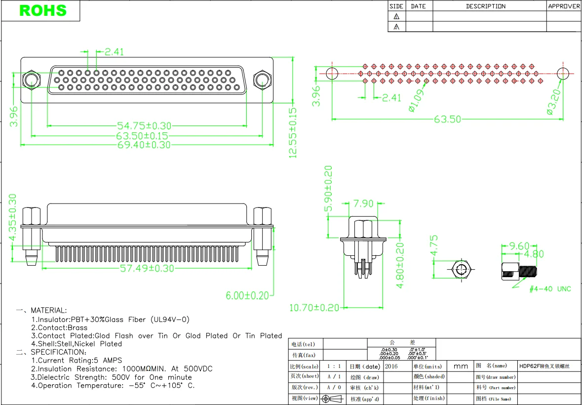 Comprar Conector macho y hembra chapado en oro piezas HDP62 DP62 DB62, clavija recta con tornillo fijo tipo d-sub, adaptador de 62 pines 62 P, 1 unidad