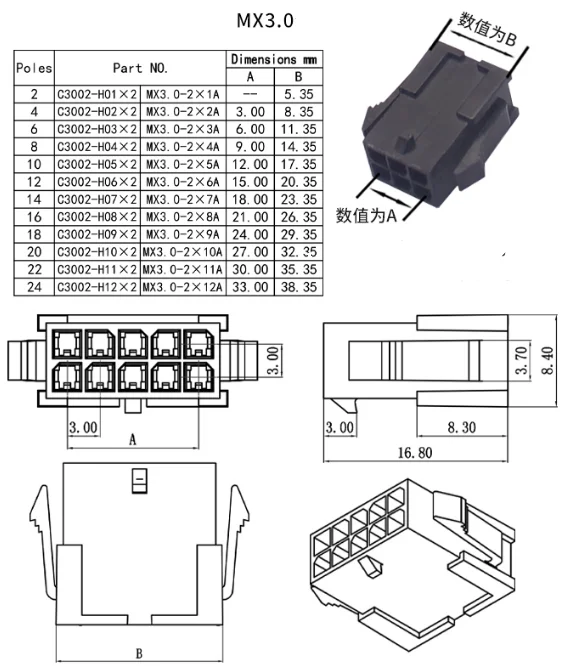 Comprar Conector Micro-Fit 3,0mm MX3.0, carcasa hembra de doble fila, 2x1/2/3/4/5/6/7/8/9/10/12 Pines, paso 3,0, serie 43640, 10 unidades