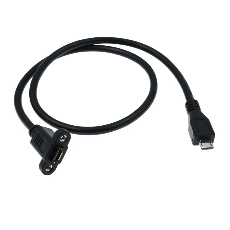 Comprar Conector Micro USB 0,25 macho de 2,0 m a Micro USB 2,0 hembra, Cable de extensión de paso de 17,5mm con tornillos, agujero de montaje en Panel