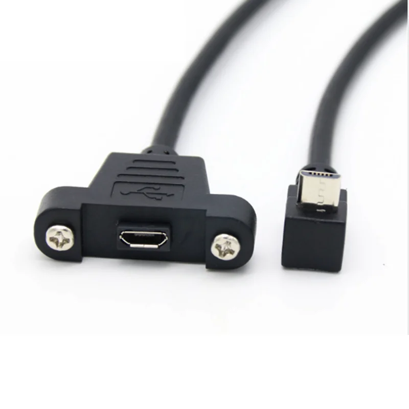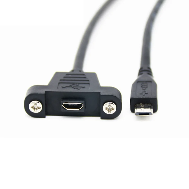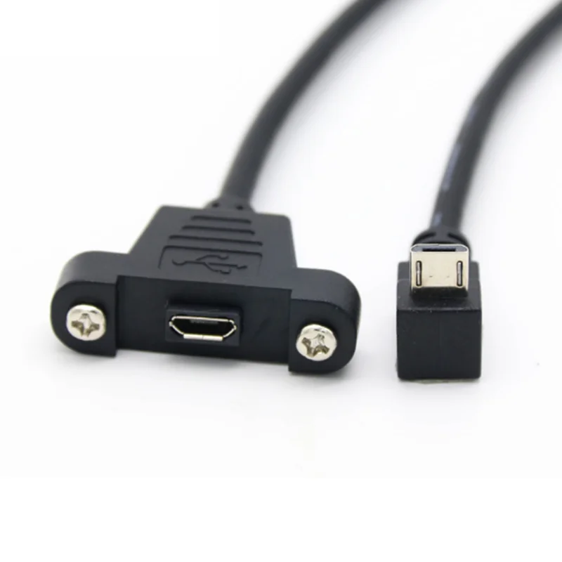 Comprar Conector Micro USB 0,3 macho a hembra, Cable de extensión con Panel de tornillo, orificios de montaje, 5 pines, 90 grados, 0,5 m, 2,0 m