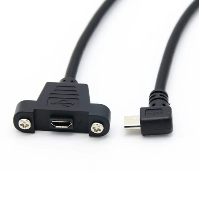 Comprar Conector Micro USB 0,3 macho a hembra, Cable de extensión con Panel de tornillo, orificios de montaje, 5 pines, 90 grados, 0,5 m, 2,0 m
