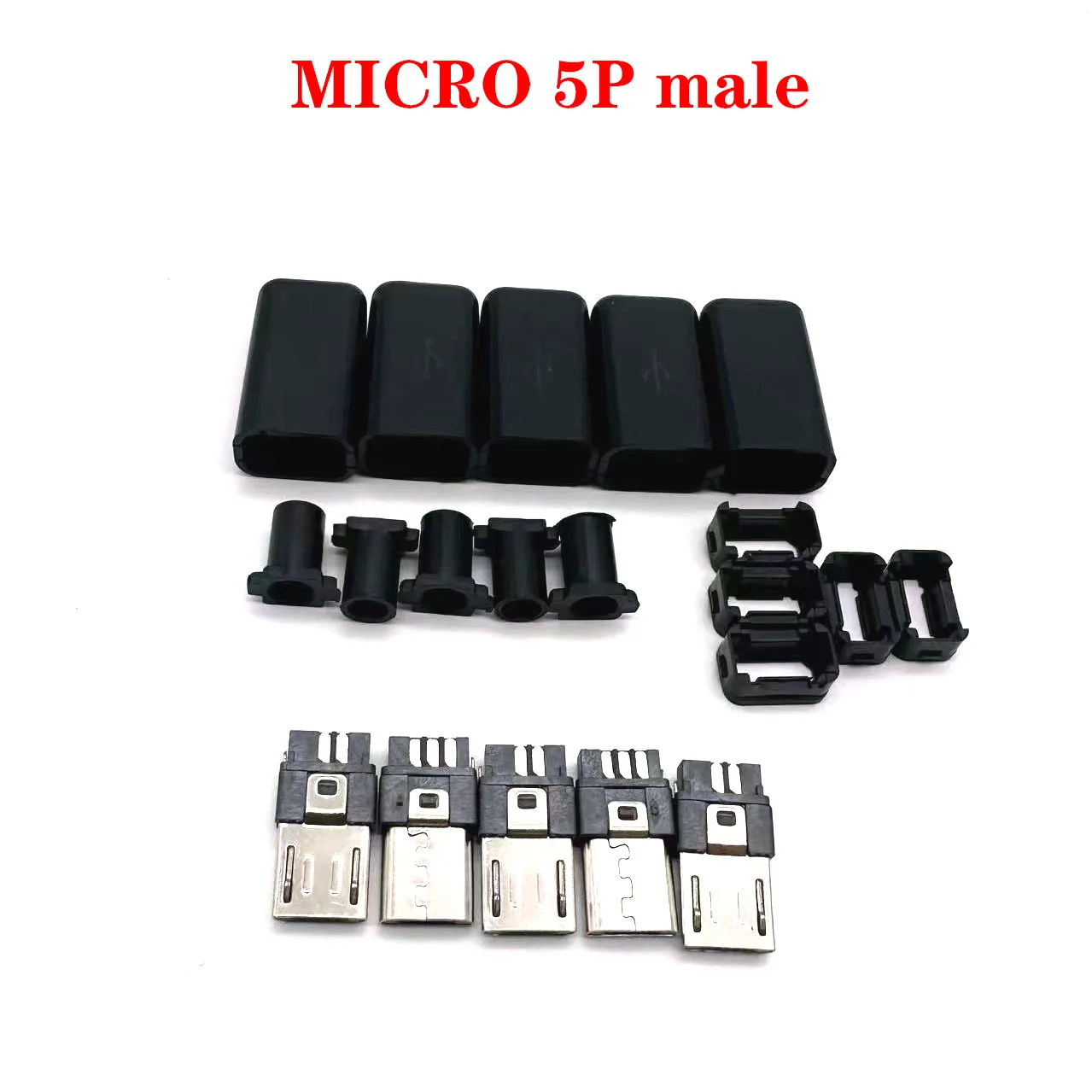 Comprar Conector Micro USB de 5 pines, conector macho, color negro, cable OTG, interfaz, accesorio de cable de datos, bricolaje