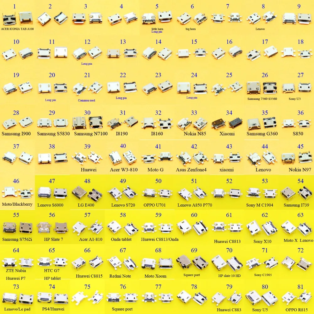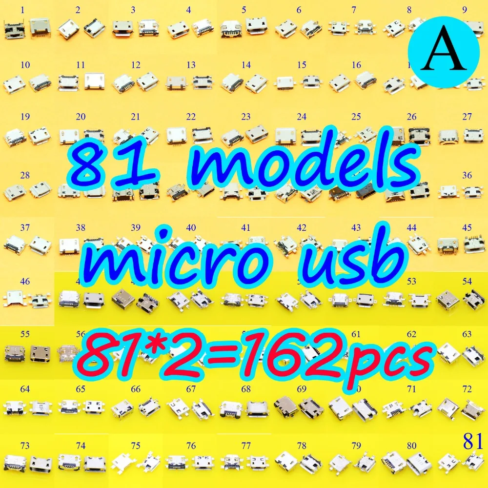 81 modelo 162PC Micro USB 5 pines Jack Tail, Mini Micro Usb conector V8 puerto de carga para Samsung Lenovo Huawei ZTE HTC ect