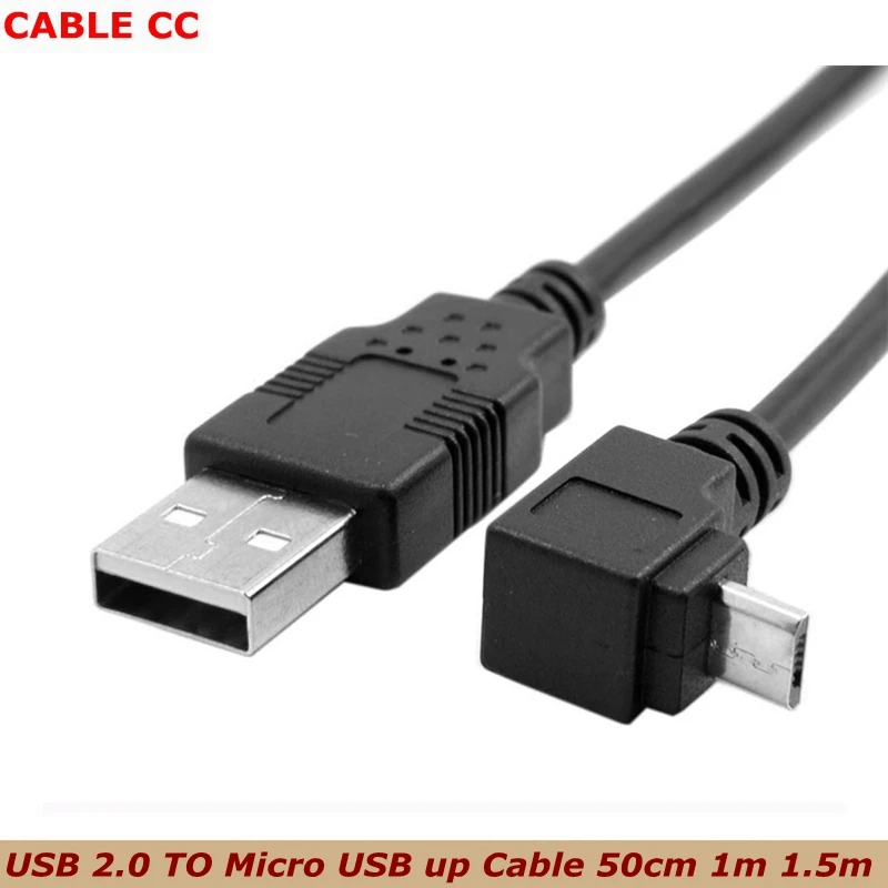 Cable de carga de datos micro USB macho a USB de 90 grados en ángulo de 100cm para teléfono celular y tableta