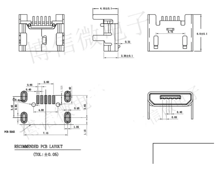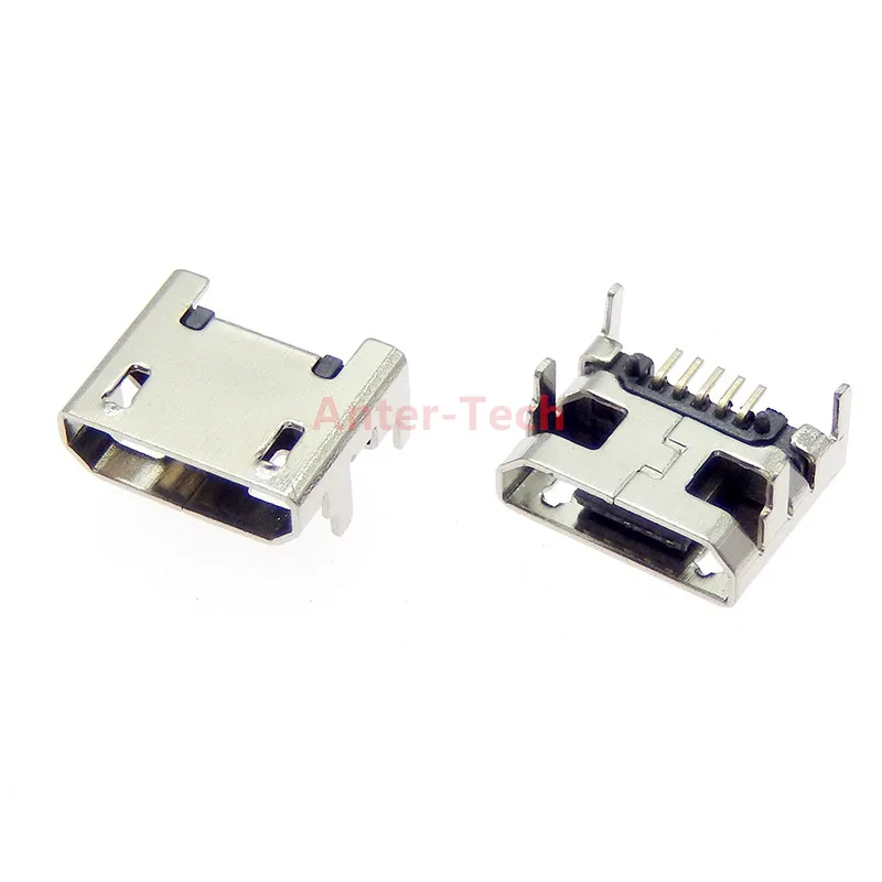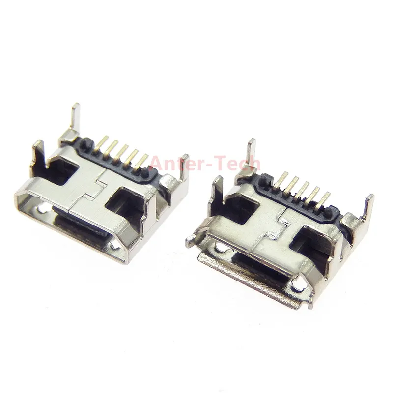 20 piezas conector Micro USB 5 pines asiento Jack Micro USB DIP4 patas cuatro patas Placa de inserción asiento mini conector USB para teléfono móvil