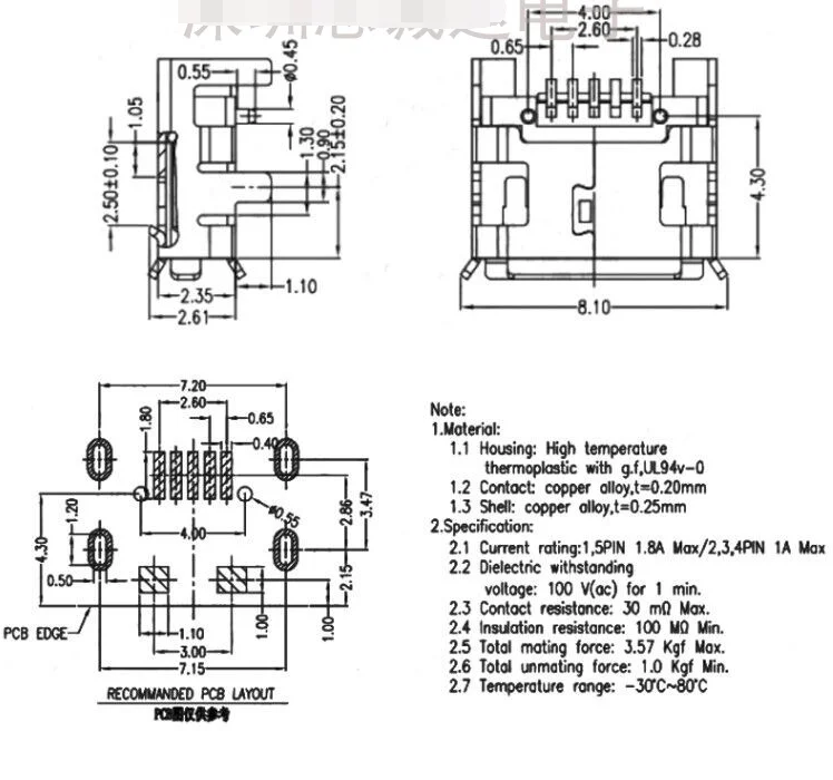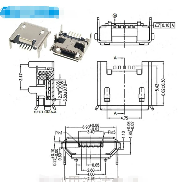 Comprar Conector Micro USB para teléfono móvil, Conector de asiento de 5 pines, patas Micro usb DIP4, placa de inserción de cuatro patas, mini conector usb para asiento, 20 piezas