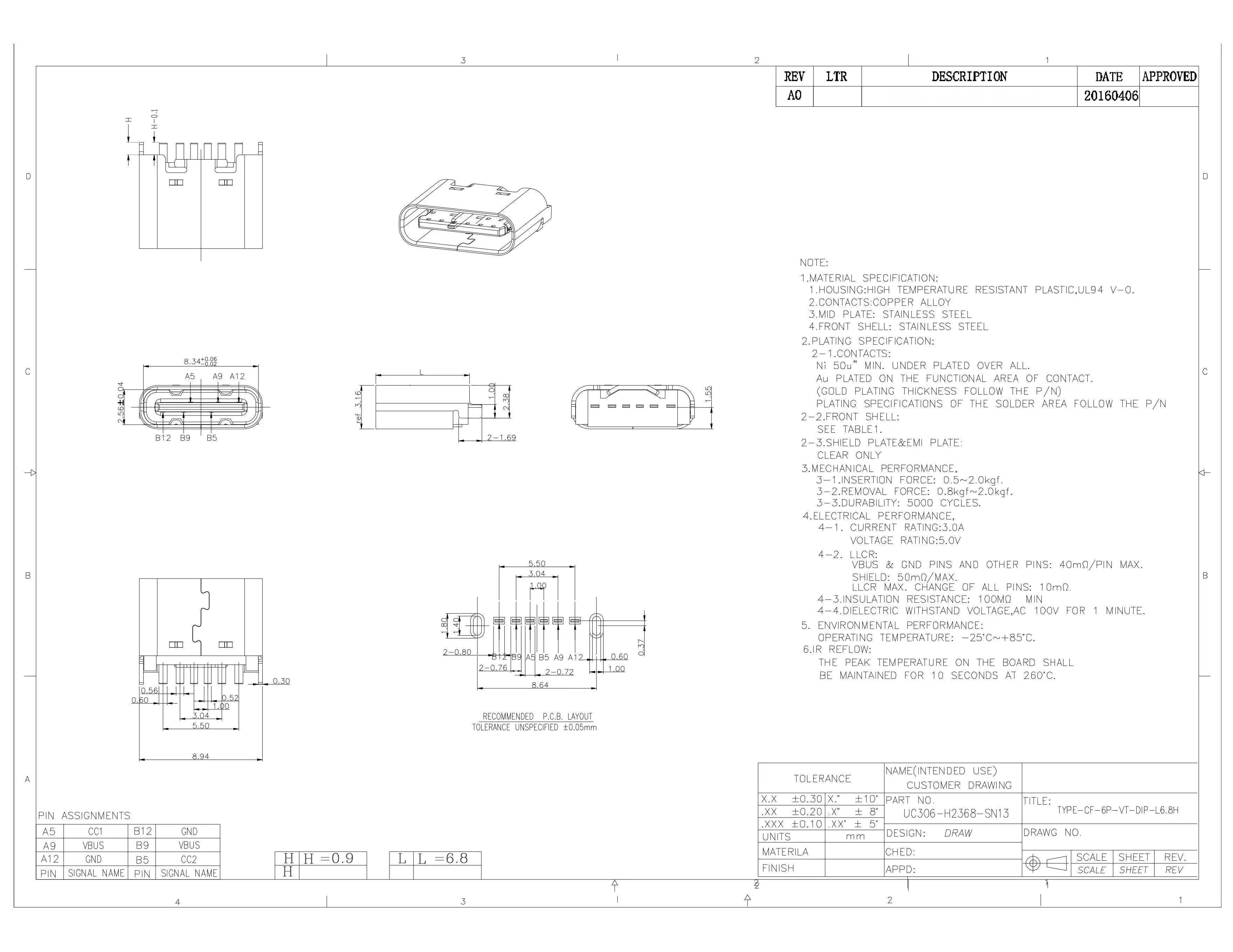 Comprar Conector Micro USB tipo C 3,1 hembra, conector SMT de 6 pines, colocación SMD DIP para PCB, diseño PD, carga rápida de alta corriente, 10 Uds./lote