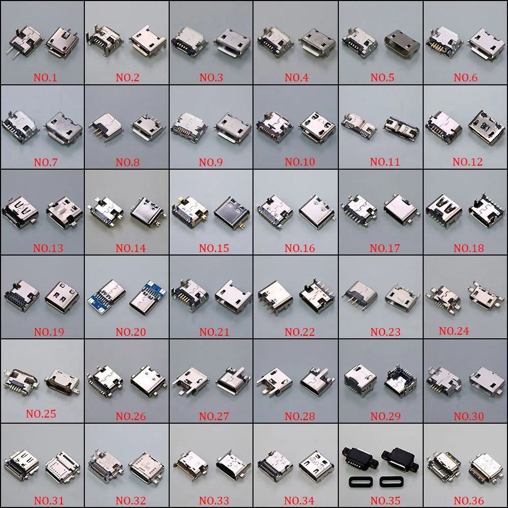 Conector Micro USB Tipo C de 36 Modelos, Puerto de Carga, Enchufe Tipo C, Conector Micro USB para Xiaomi, Huawei, Samsung y SONY