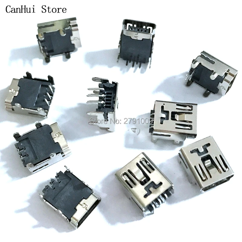 Comprar Conector Mini usb para teléfono móvil, conector hembra tipo B, Micro USB, 90 grados, 4P, 5 pines, 10 Uds.