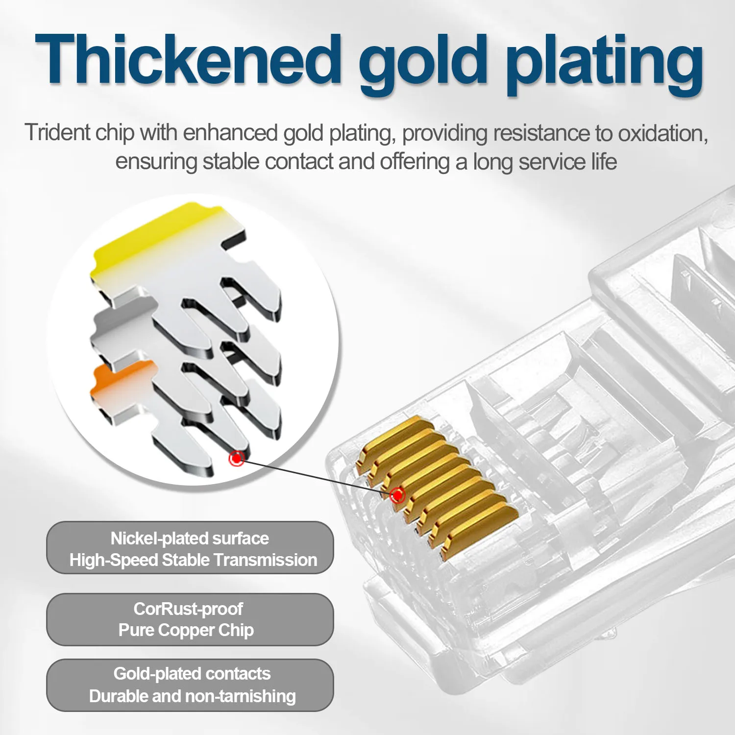 Comprar Conector Modular Cat5e RJ45, conector 8P8C, UTP, engarce, cabezal de cristal, 50 piezas, modularidad chapada en oro para Cable de red Ethernet