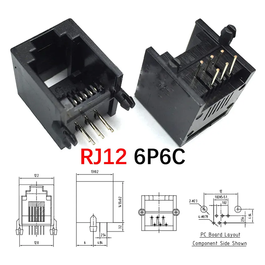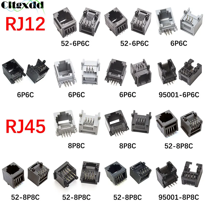 Comprar Conector Modular de teléfono con montaje en PCB, interfaz de cristal hembra, 10 piezas, RJ12, RJ45, 6P6C, 8P8C