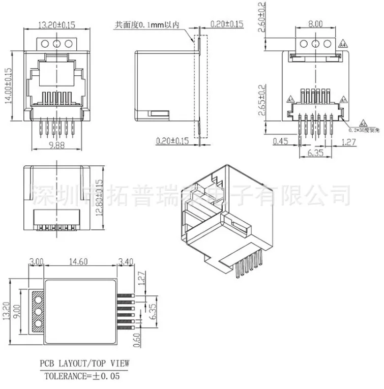 Comprar Conector Modular de teléfono con montaje en PCB, interfaz de cristal hembra para conector de teléfono, 1 piezas, RJ12, 6P6C, RJ11, 6 pines