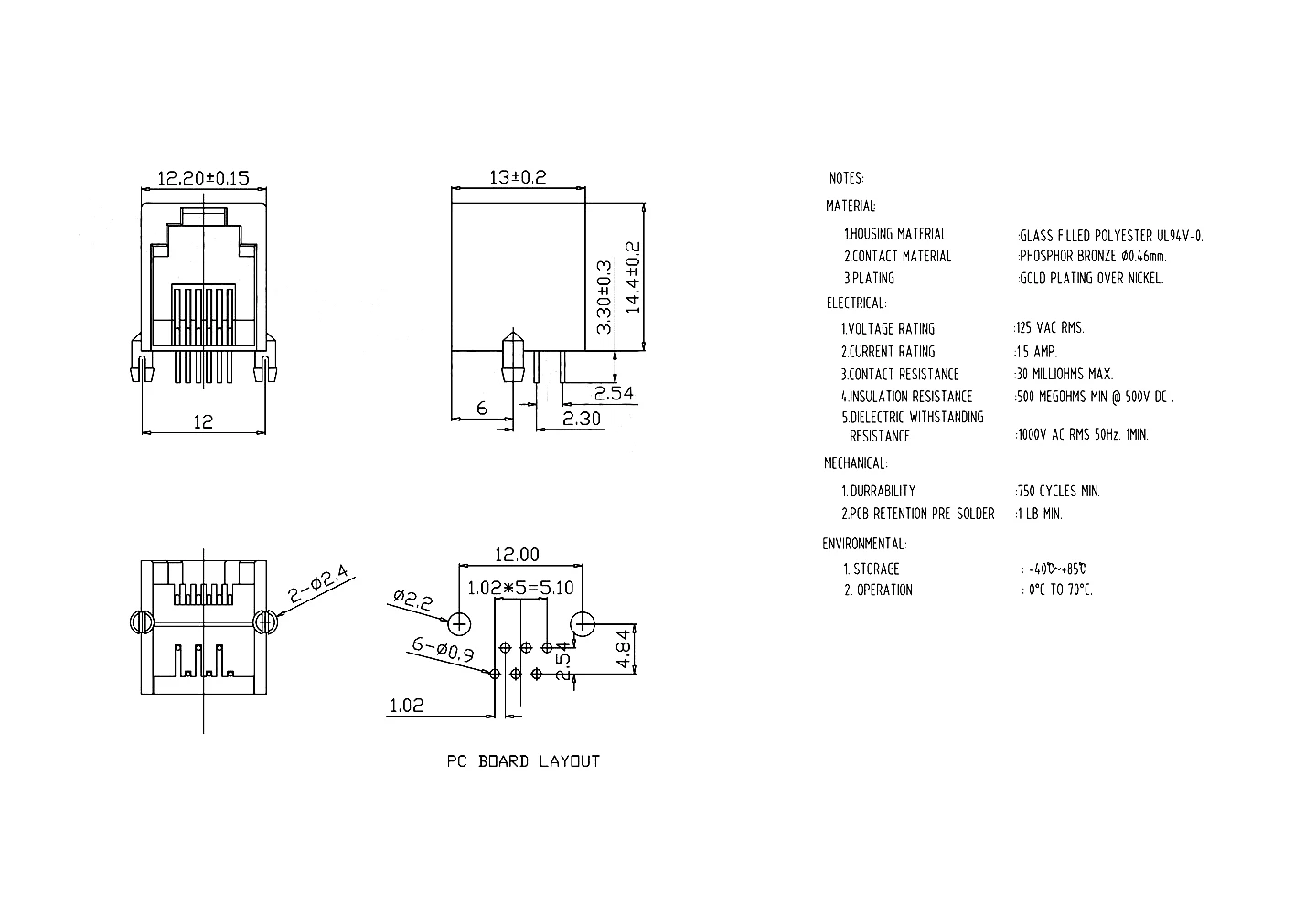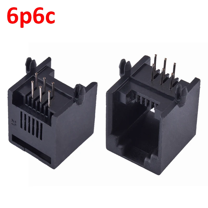 Conector Modular de Teléfono, Conector Hembra de Cristal, Montaje en PCB, RJ12, 6P6C, RJ11, 10