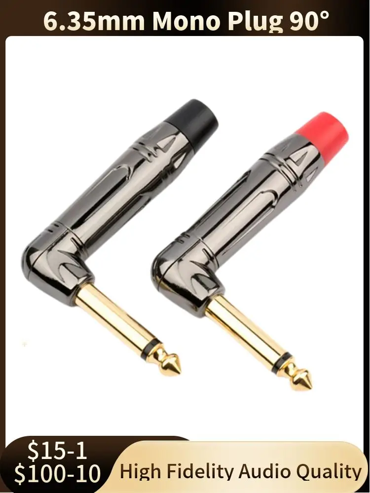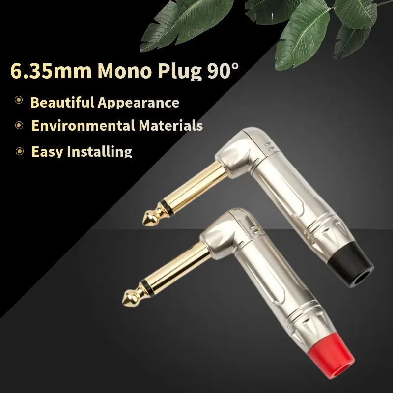 Comprar Conector Mono de 6,5mm, conector de Audio de 1/4 ", conector de 90 grados, 6,3mm, 6,3 macho, mezclador DIY, micrófono, Cable de guitarra, Terminal de altavoz