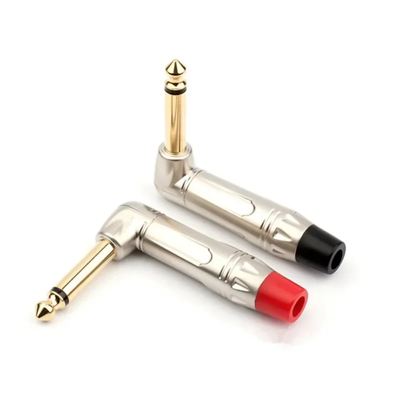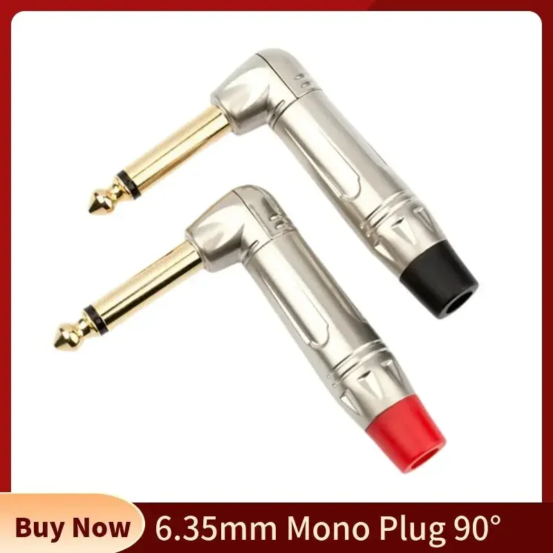 Comprar Conector Mono de 6,5mm, conector de Audio de 1/4 ", conector de 90 grados, 6,3mm, 6,3 macho, mezclador DIY, micrófono, Cable de guitarra, Terminal de altavoz