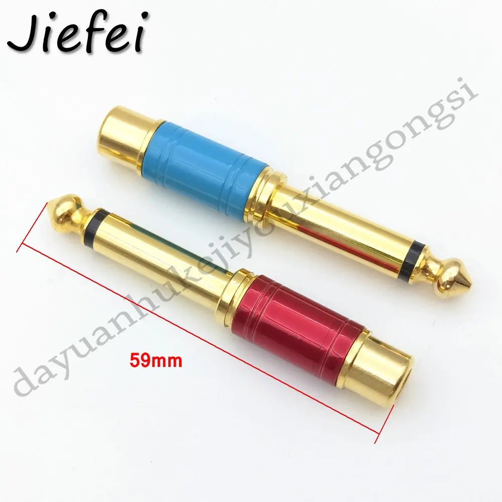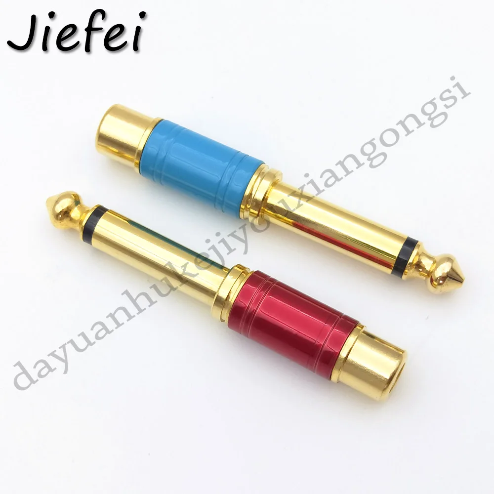 Comprar Conector Mono a RCA macho hembra, Adaptador de Audio de alta calidad, chapado en oro, 6,35mm, 1/4 pulgadas, TS, para uso doméstico y KTV, 2 uds.