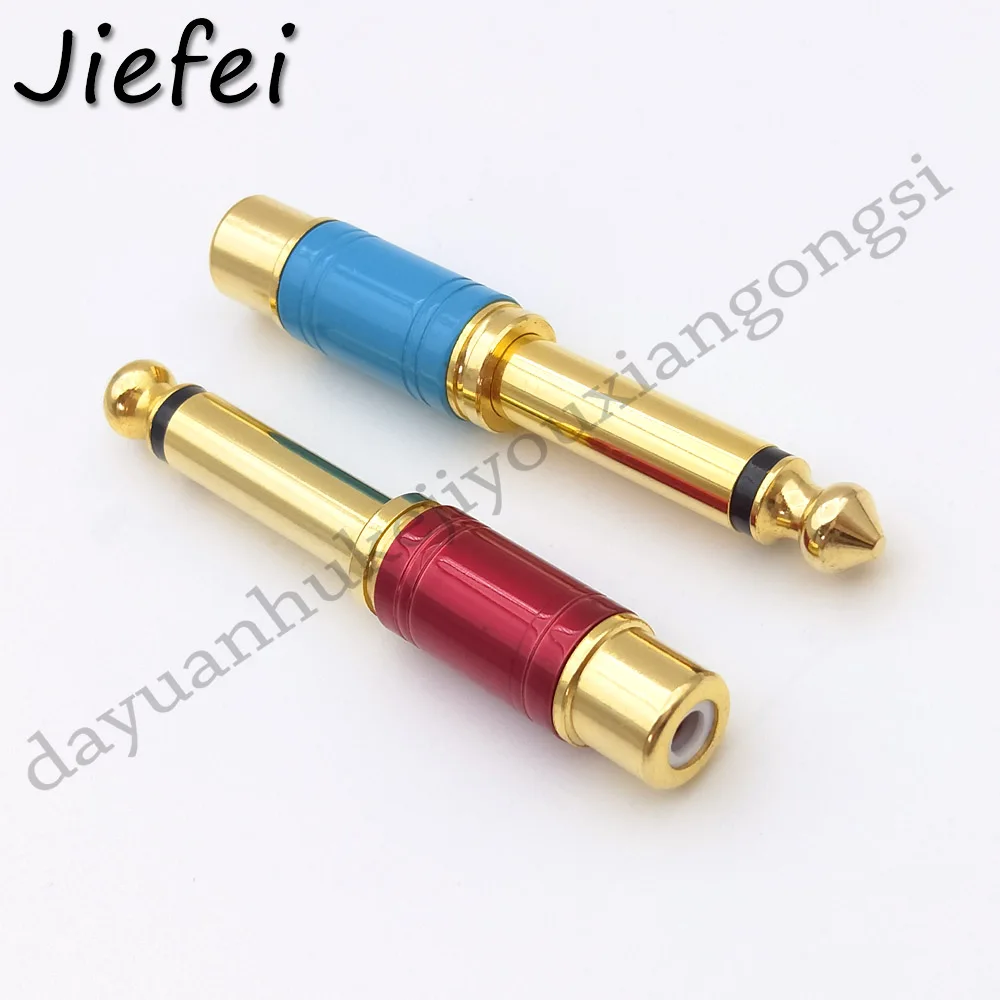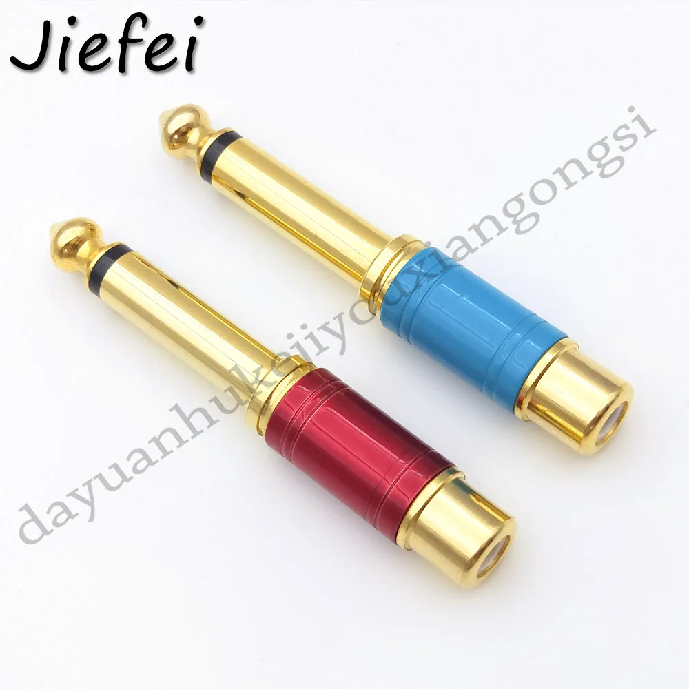 Comprar Conector Mono a RCA macho hembra, Adaptador de Audio de alta calidad, chapado en oro, 6,35mm, 1/4 pulgadas, TS, para uso doméstico y KTV, 2 uds.