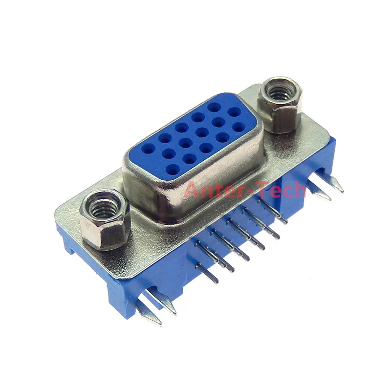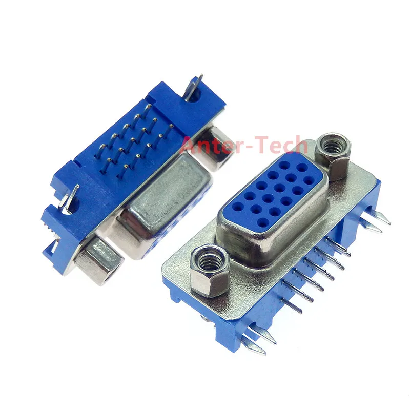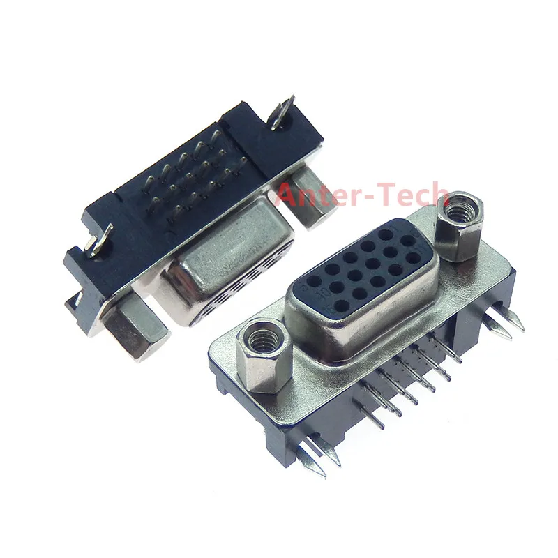 Comprar Conector de montaje PCB hembra DB15 DR15, ángulo recto d-sub, 3 filas, conectores de puerto paralelo azul, adaptador de enchufe VGA de 15 Pines, 5 uds.