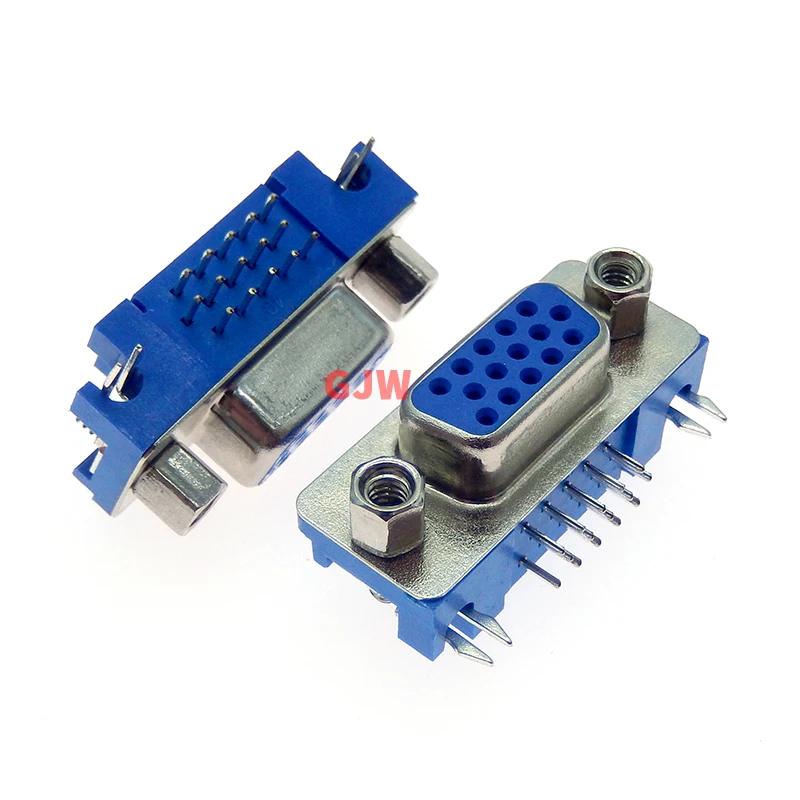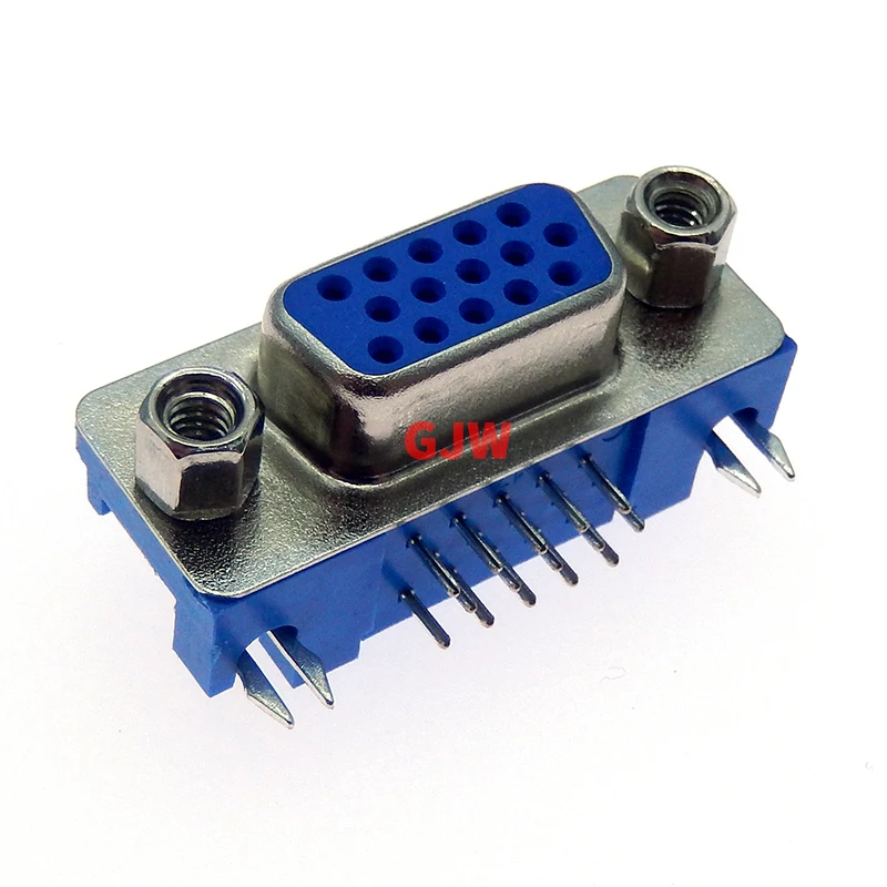 Comprar Conector de montaje PCB hembra DB15 DR15, ángulo recto d-sub, 3 filas, conectores de puerto paralelo azul, adaptador de enchufe VGA de 15 Pines, 5 uds.