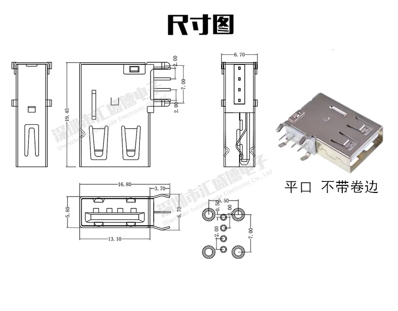 Comprar Conector de montaje de PCB USB 2,0 A, conector hembra Vertical, 10 piezas, largo de 90 grados