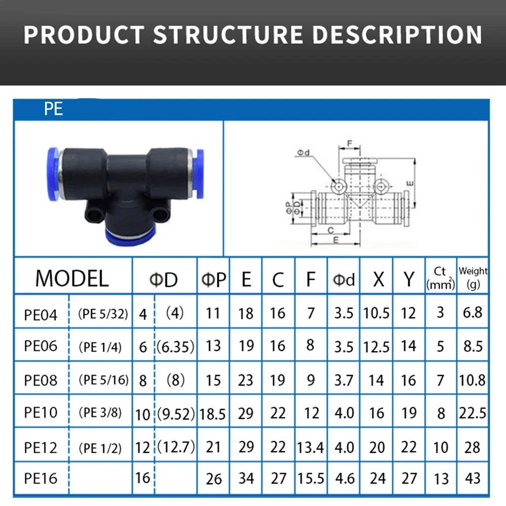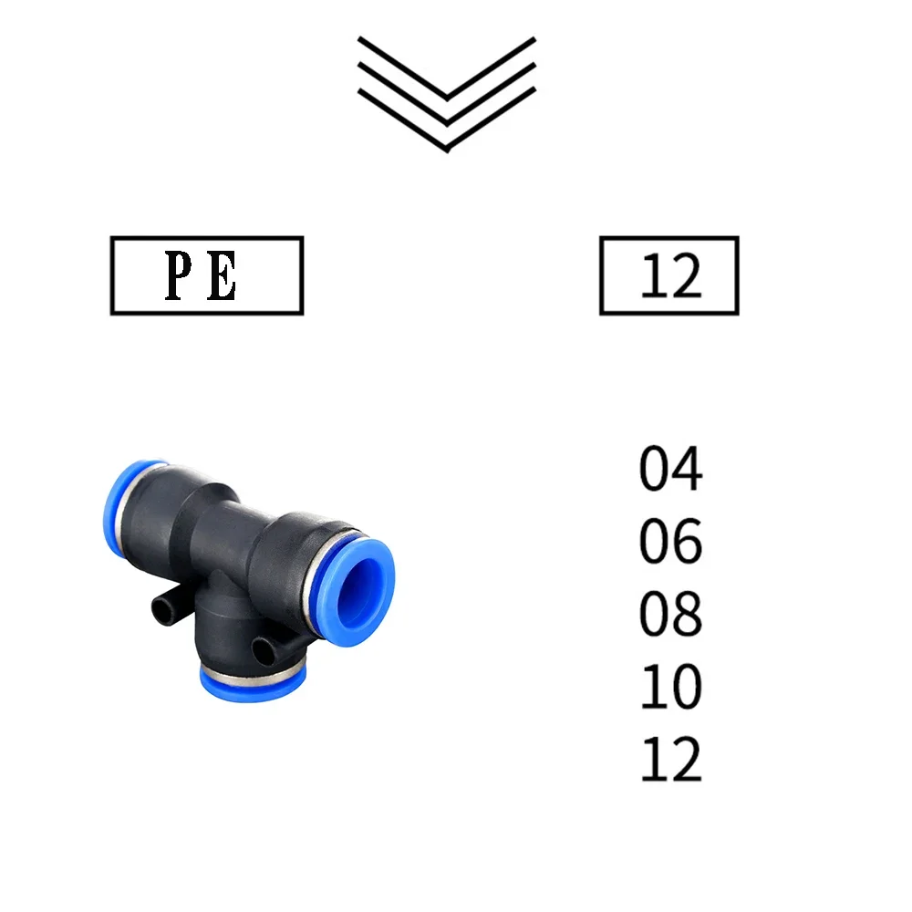 Conector neumático PE PEG, reductor en T de conexión rápida, tubo de plástico en forma de T, manguera de agua de 4mm, 6mm, 8mm, 10mm, 12mm, 14mm y 16mm